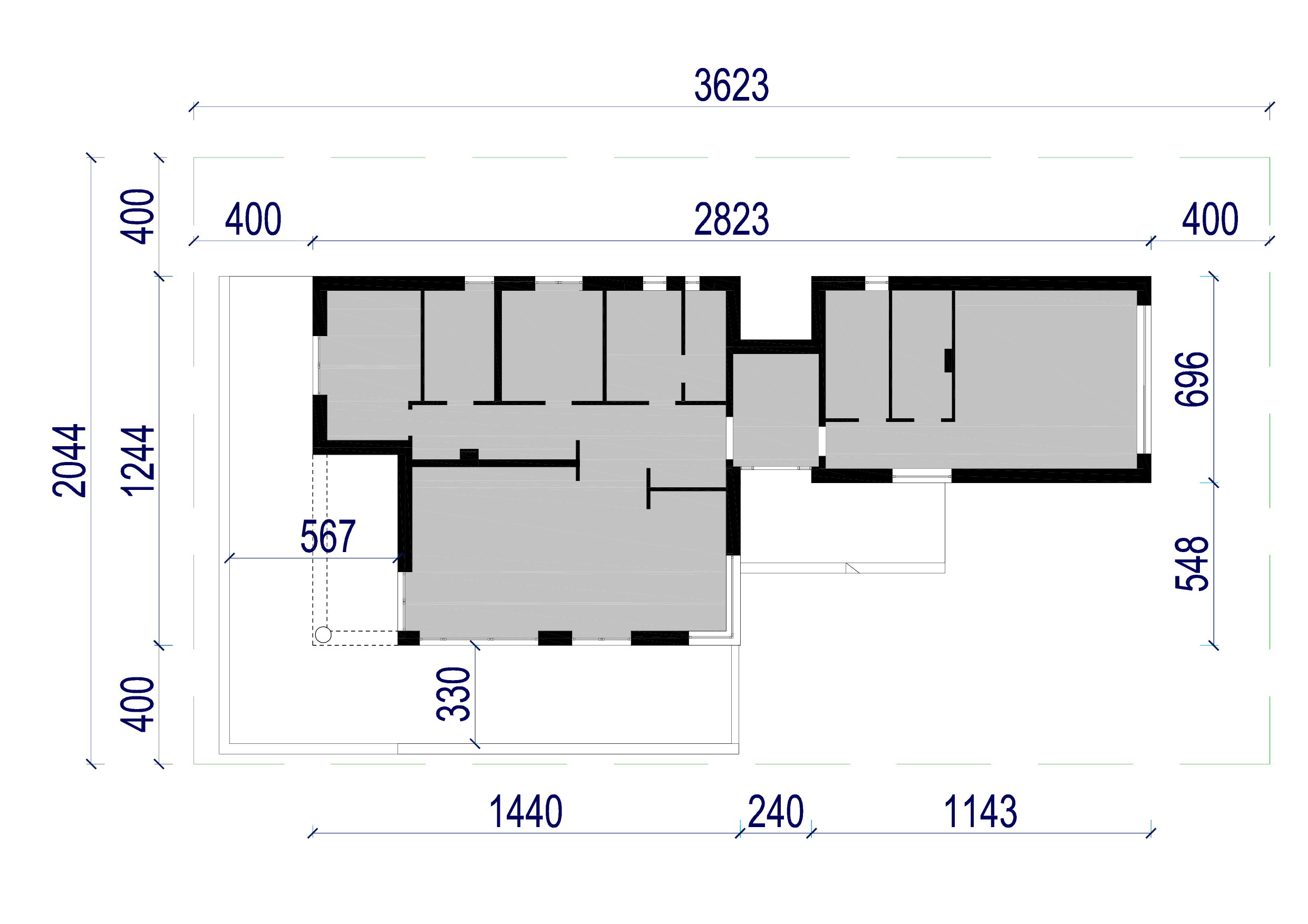 Dostępny w trzech wariantach elewacyjnych („Przewiązka” ver 2 i ver 3). Ściany z betonu komórkowego YTONG ocieplone styropianem, wykończone klinkierem.
